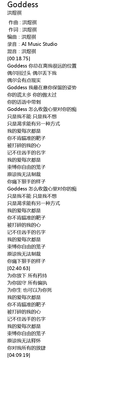 | [00:37.83] | Goddess 我最在意你保留的姿势 |