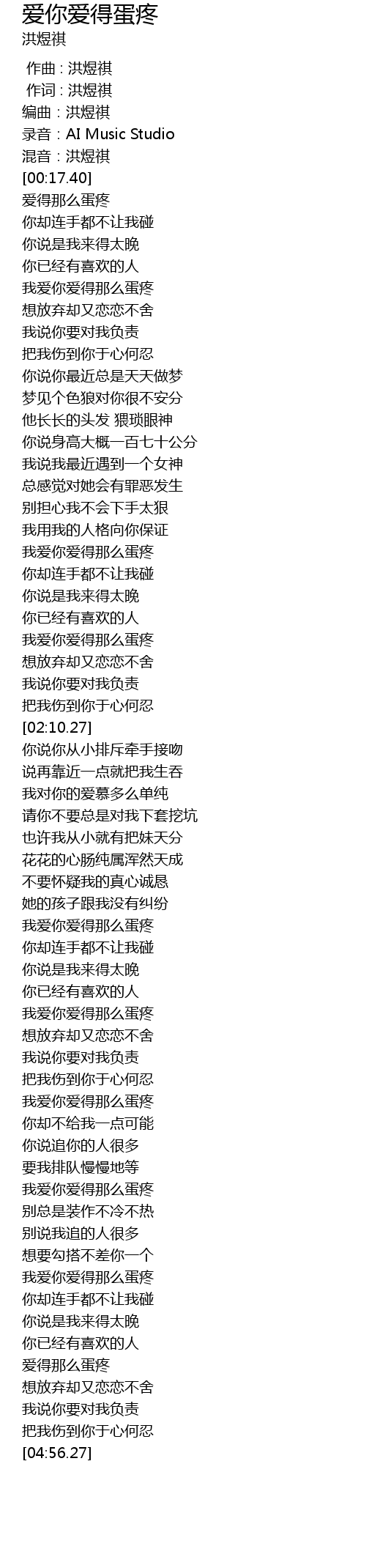 | [04:17.66] | 我爱你爱得那么蛋疼 |