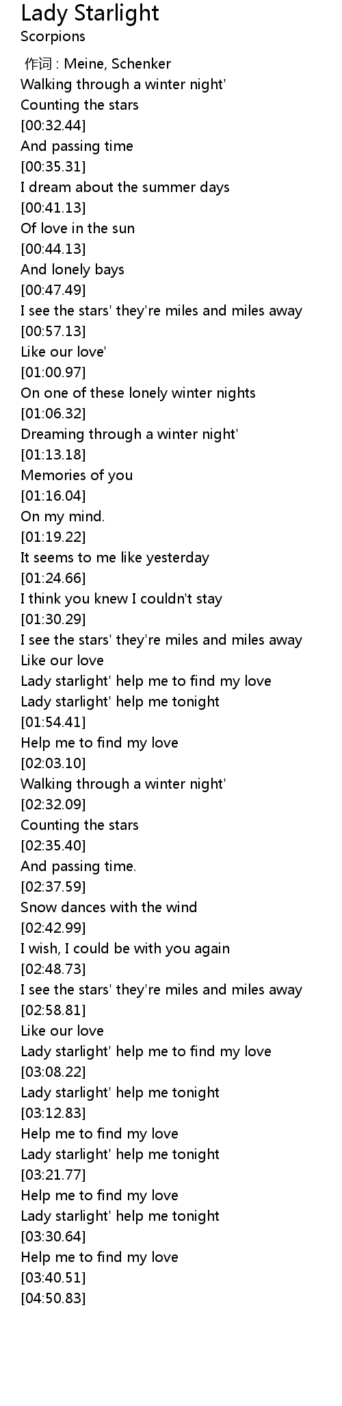 | [03:02.06] | Lady starlight' help me to find my love |