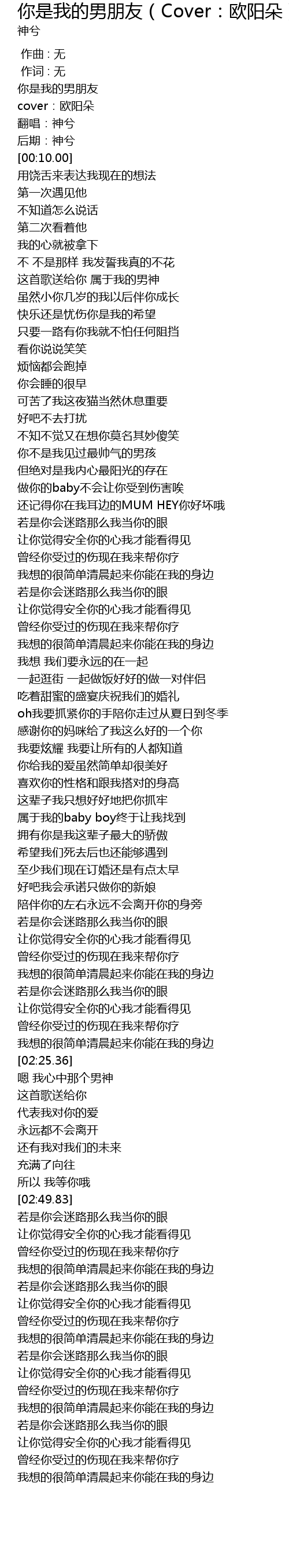 | [00:02.00] | 你是我的男朋友 |