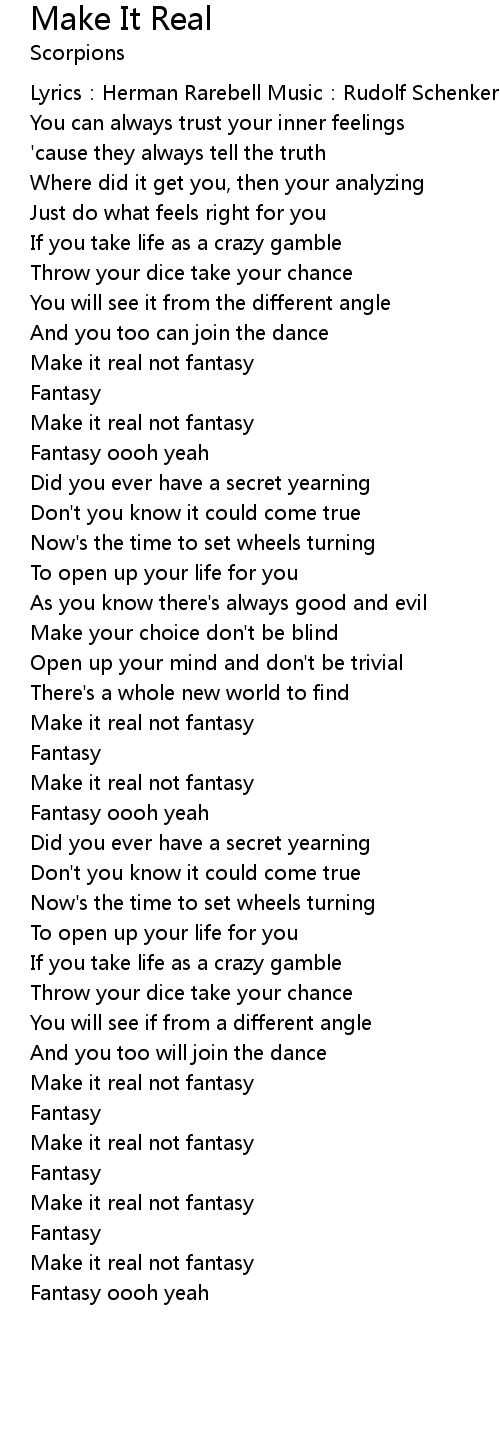 | Make it real not fantasy | |