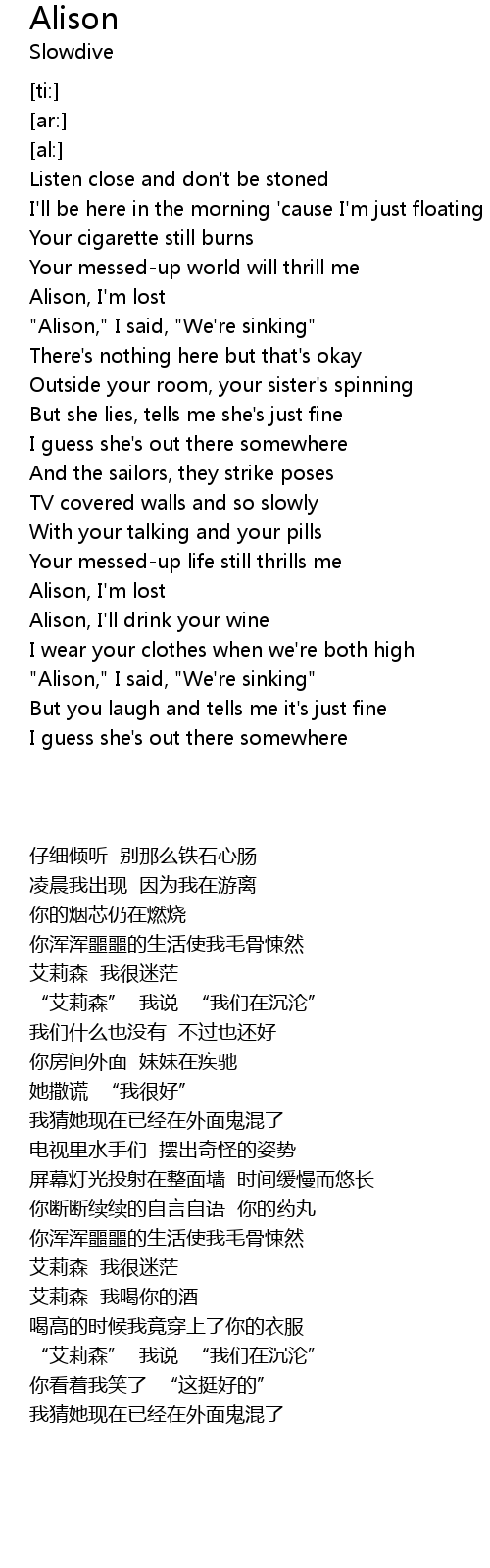 | [02:42.70] | "Alison," I said, "We're sinking" |