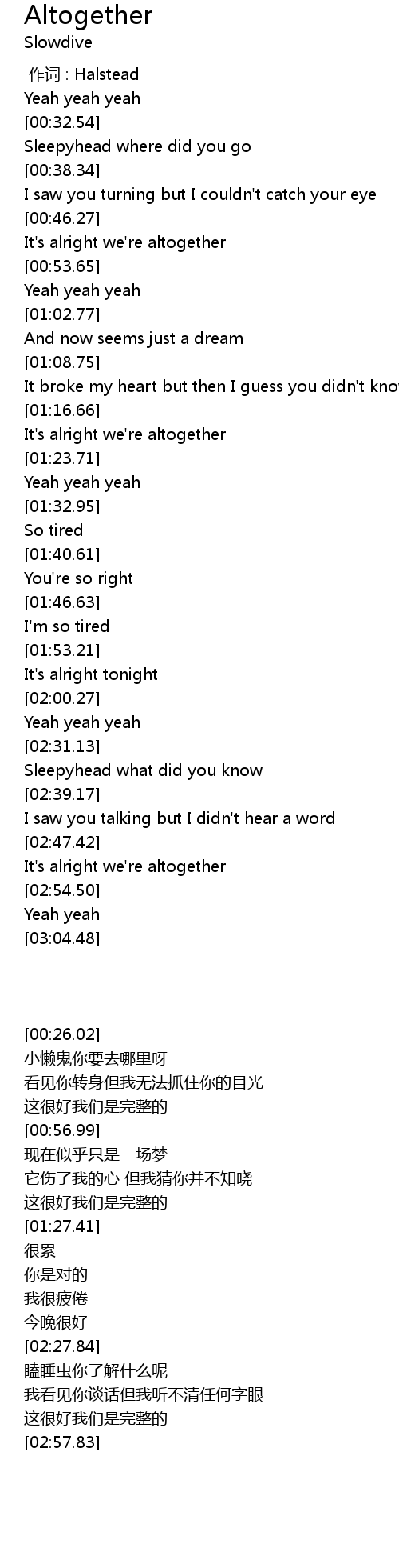 | [00:40.20] | I saw you turning but I couldn't catch your eye |