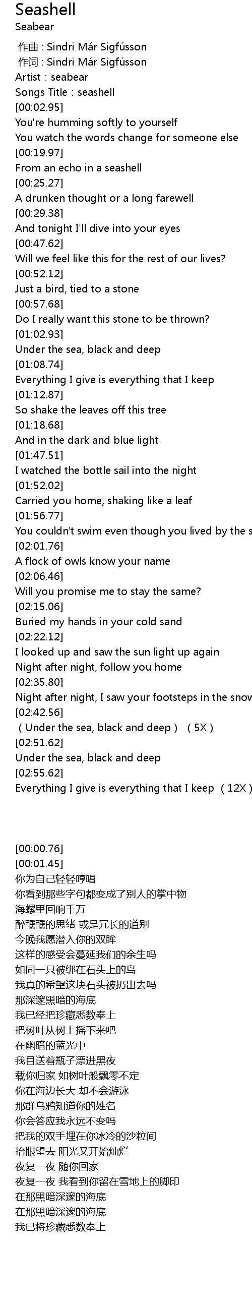 | [00:00.76] | Artist:seabear |