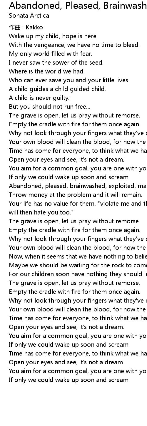 | Song | Abandoned, Pleased, Brainwashed, Exploited |
