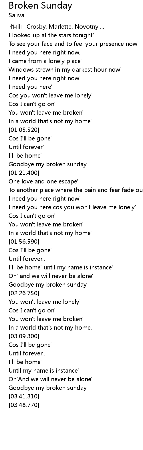 | [03:35.500] | Goodbye my broken sunday. |