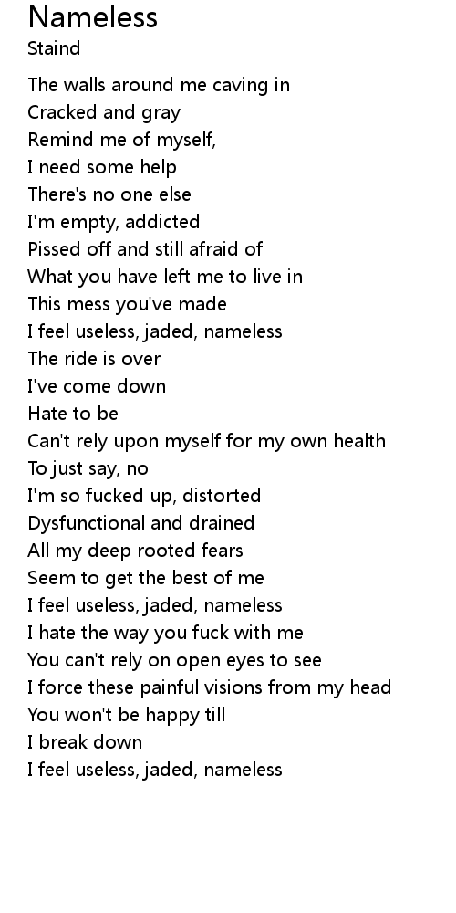 | I feel useless, jaded, nameless |