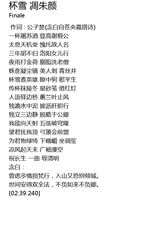 | [00:49.770] | 杯雪煮英雄 隙中驹 慰平生 |
