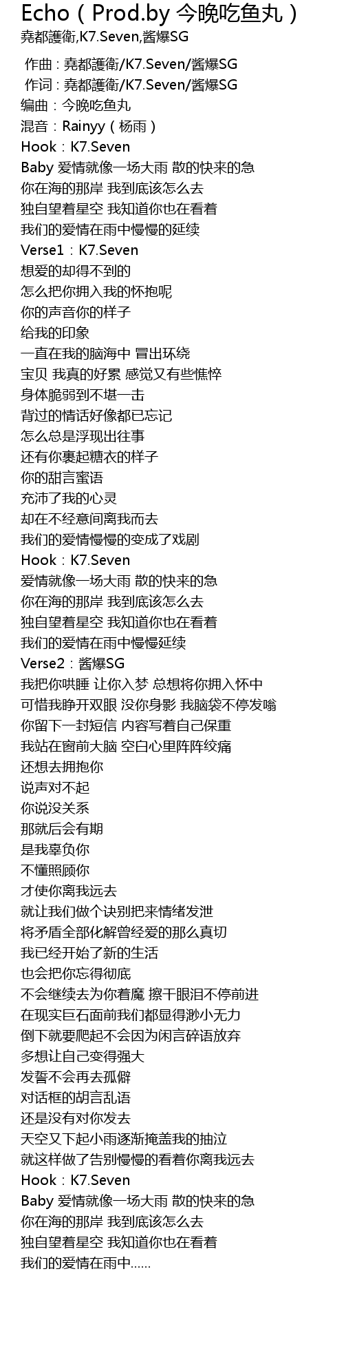 | [00:01.000] | 作词 : 堯都護衛/K7.Seven/酱爆SG |