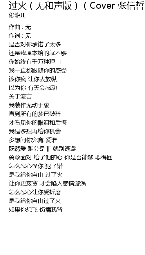 | Song | 过火(无和声版)(Cover 张信哲) |