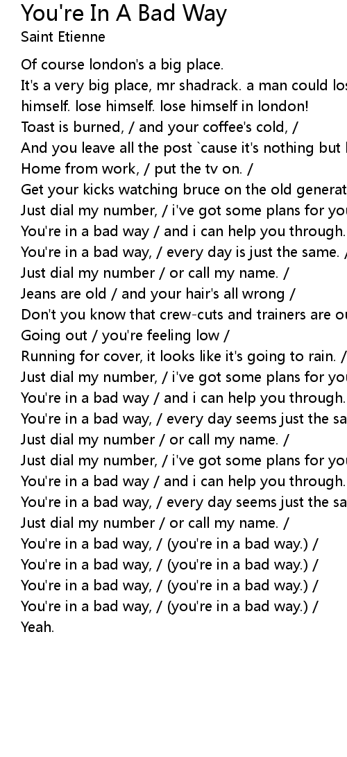 You're in a bad way, / (you're in a bad way.) / |