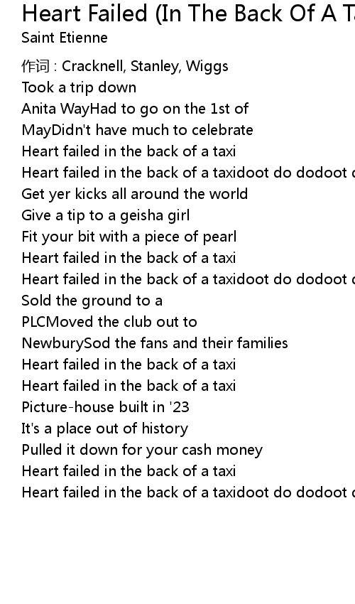 | Heart failed in the back of a taxidoot do dodoot do do |
