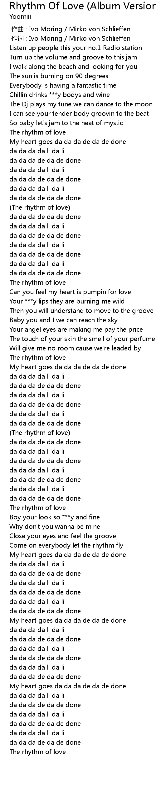 | [02:05.001] | (The rhythm of love) |