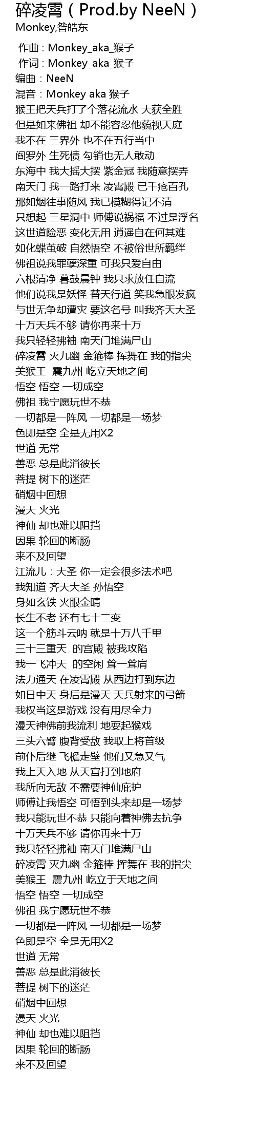 | [00:02.411] | hùn yīn: Monkey aka hóu zi |
