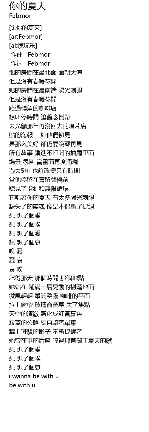 | [00:01.00] | 作词 : Febmor |