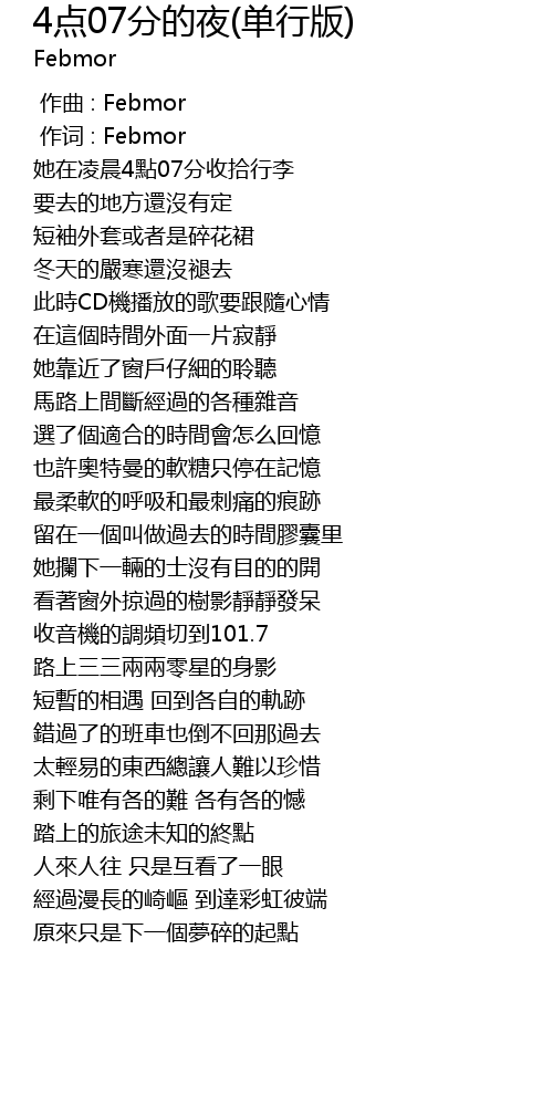 | [00:46.33] | 她在凌晨4點07分收拾行李 |
