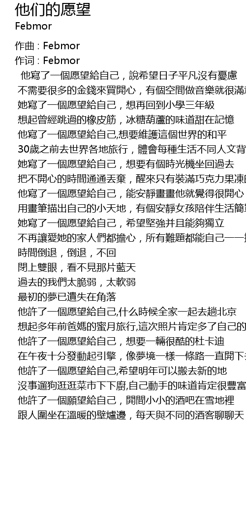 | 作词 : Febmor | |