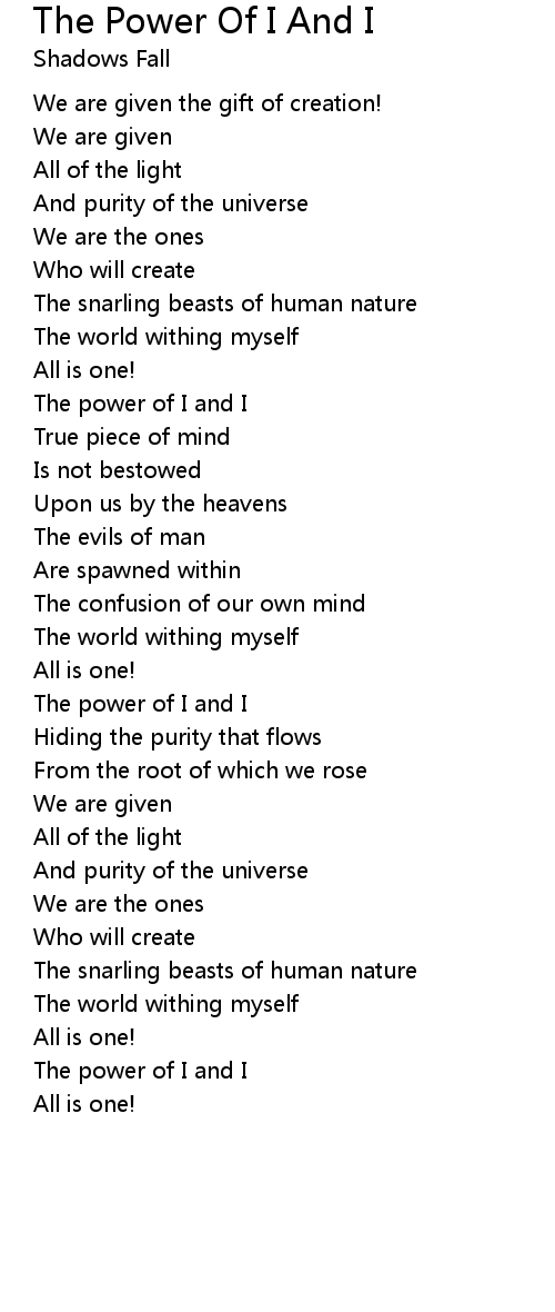 The Power Of I And I Lyrics