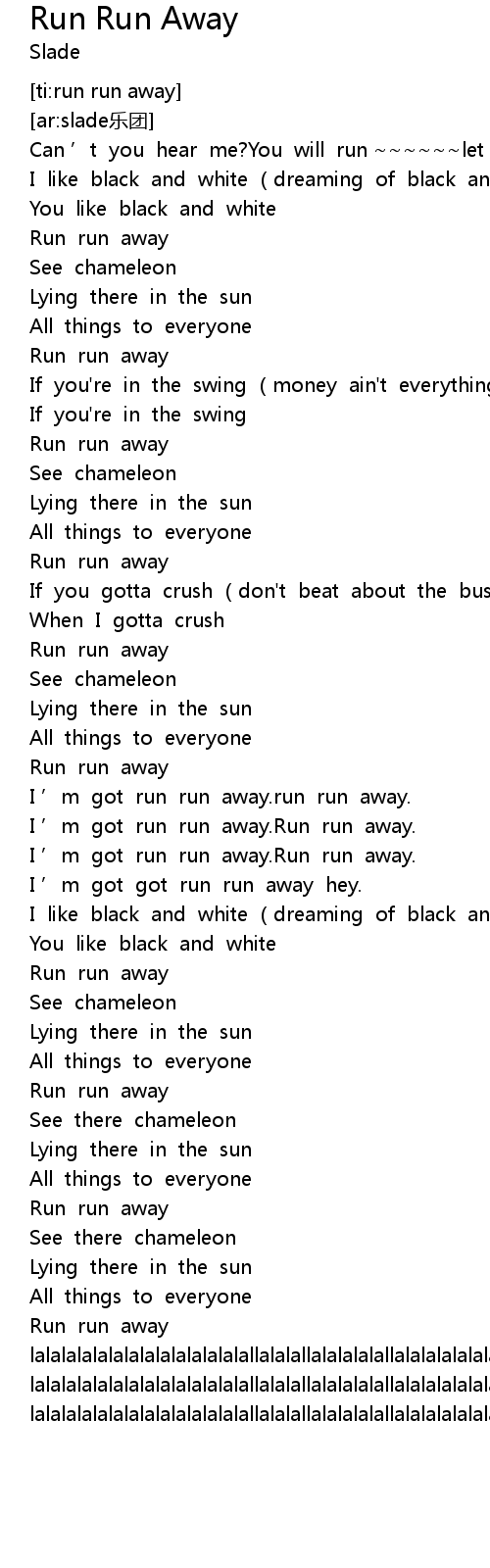 | [01:56.455] | I ' m got run run away. Run run away. |