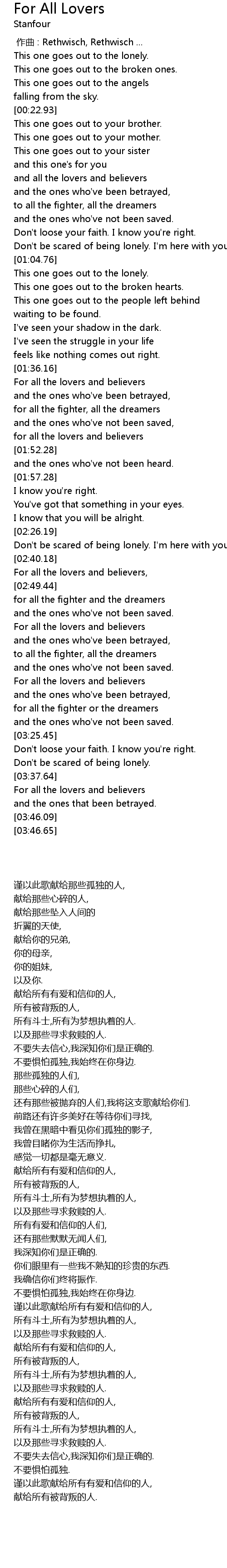 | [03:38.26] | For all the lovers and believers |