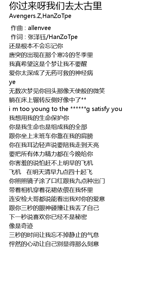 | [00:36.402] | i m too young to the ******g satisfy you |