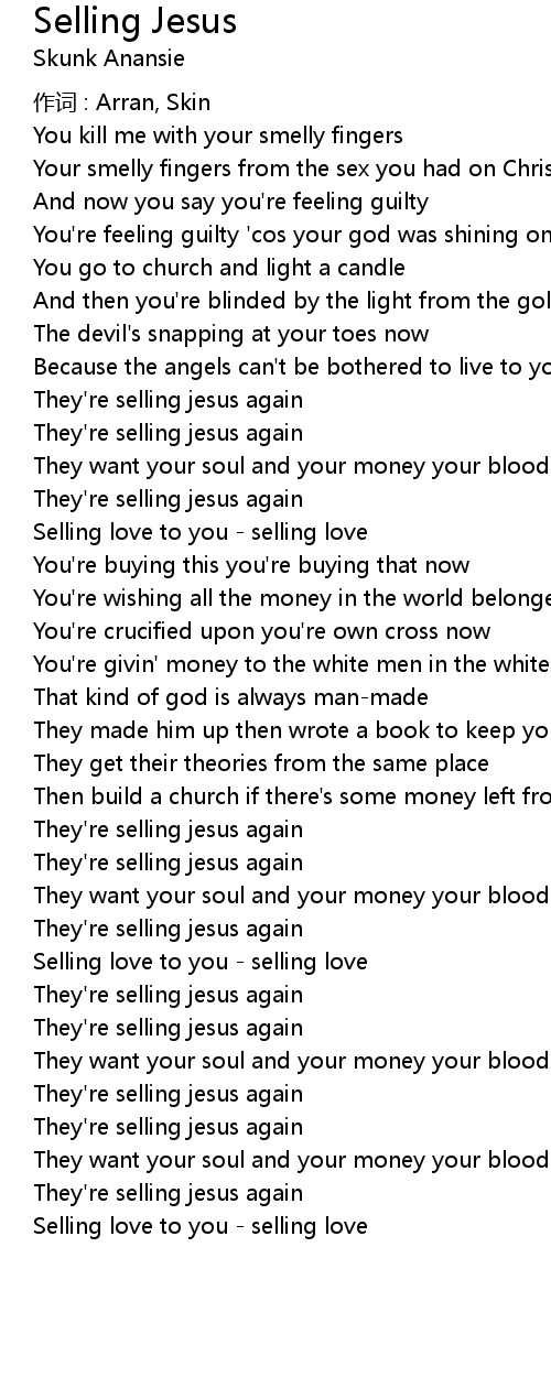| You' re feeling guilty ' cos your god was shining on your face | |