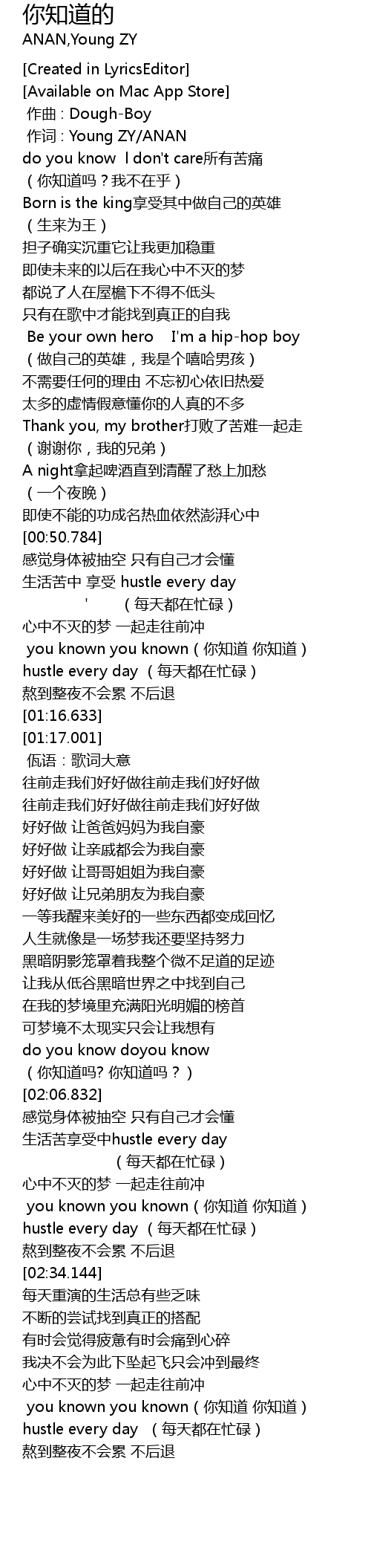 | [02:53.552] | you known you known nǐ zhī dào nǐ zhī dào |