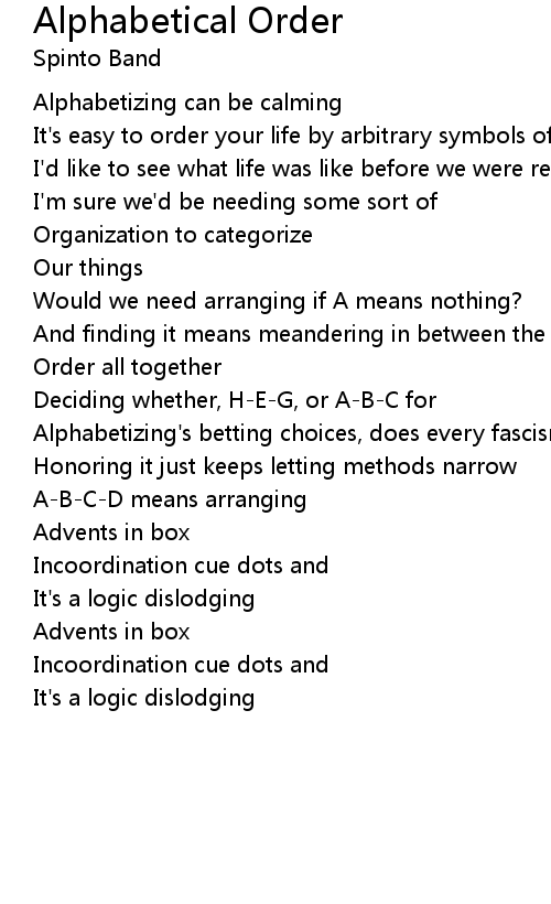 Alphabetizing's betting choices, does every fascism grow? |