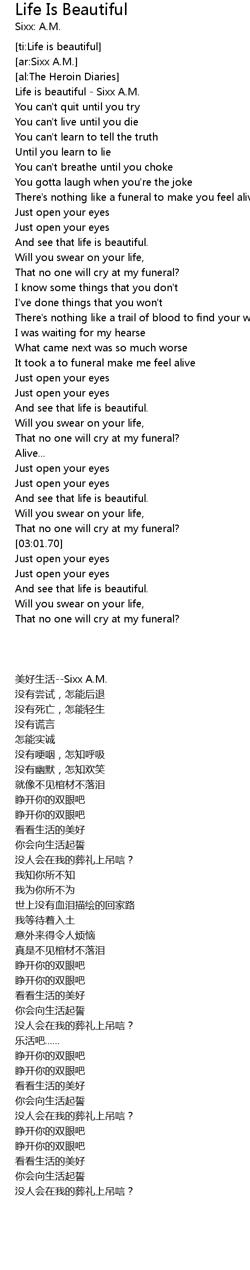 Life is beautiful - Sixx A.M. |