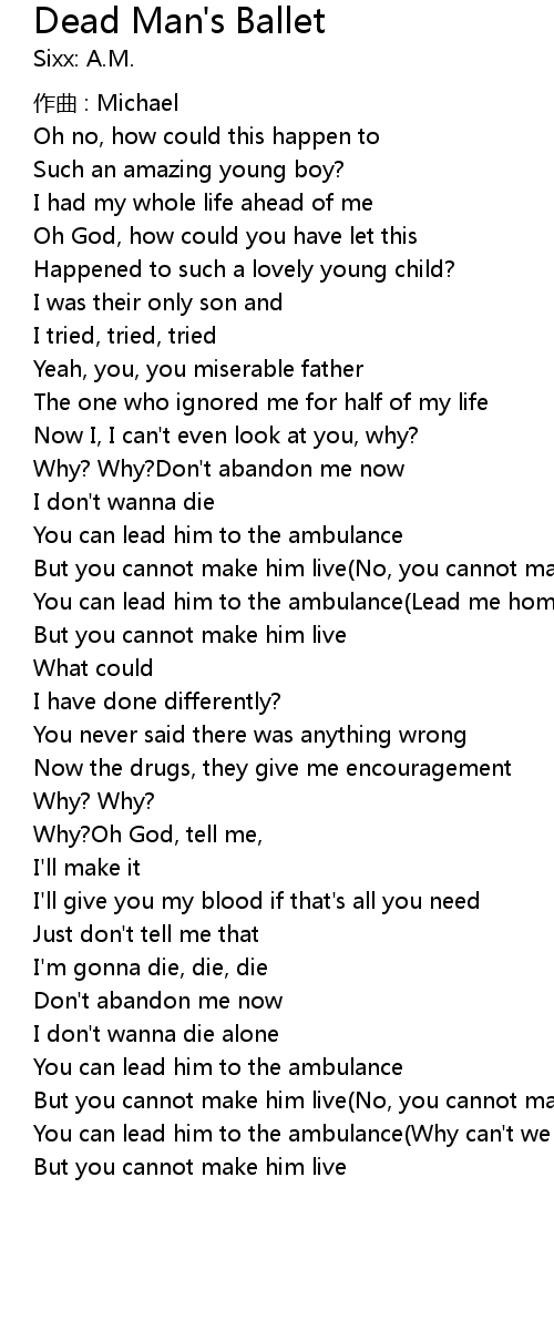 | You can lead him to the ambulance Why can' t we celebrate? Lead me home | |