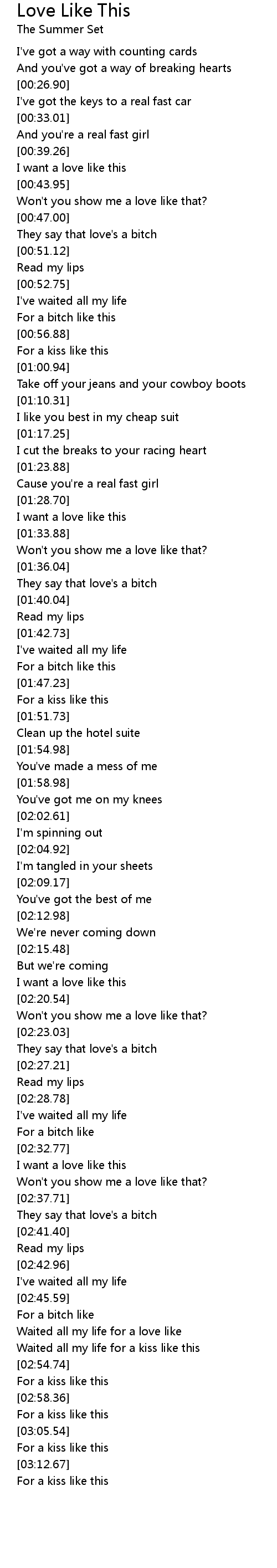 [02:57.11] For a kiss like this
