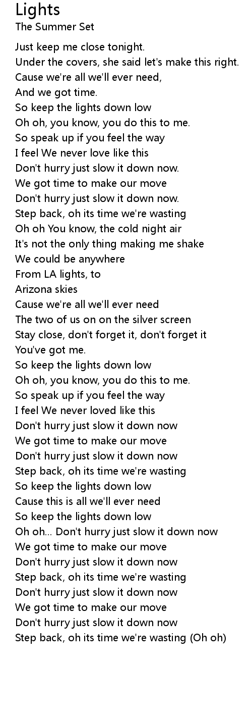 So keep the lights down low |