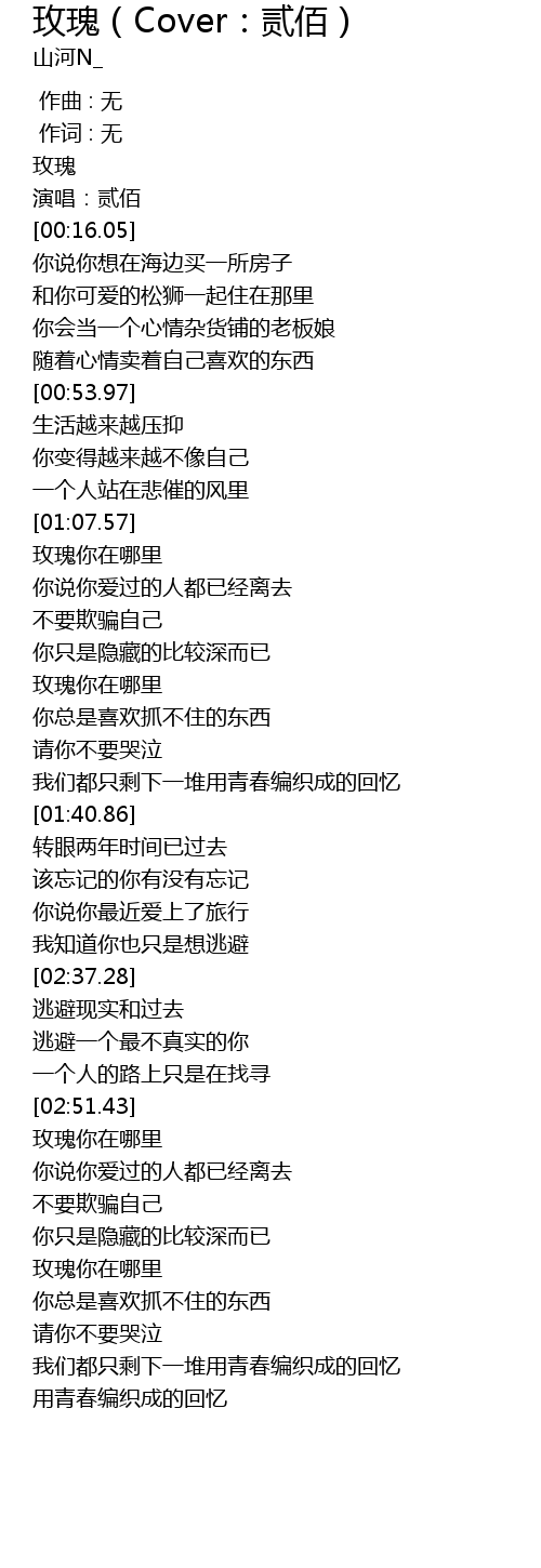 | [00:15.65] | yǎn chàng: èr bǎi |
