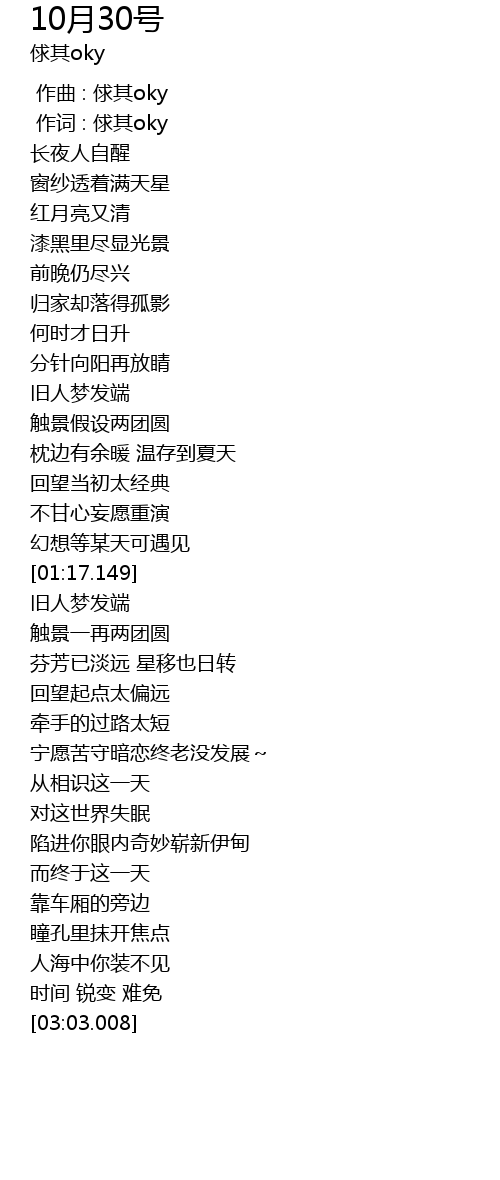 | [00:01.000] | 作词 : 俅其oky |