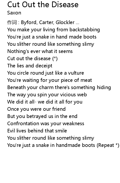 | Song | Cut Out the Disease |