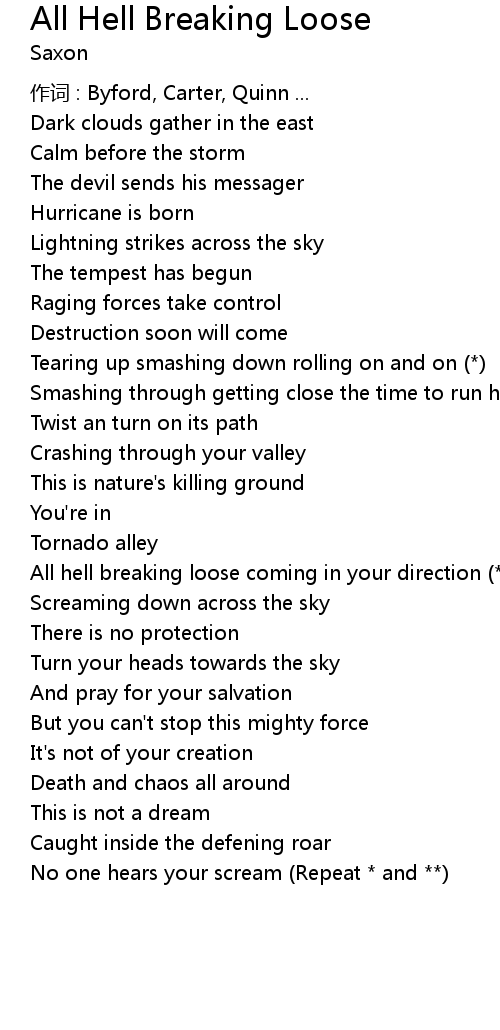 | Song | All Hell Breaking Loose |
