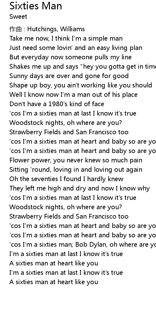 | 'cos I'm a sixties man at heart and baby so are you | |