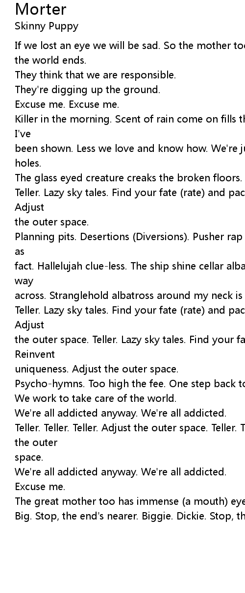Psycho-hymns. Too high the fee. One step back to sanity. |