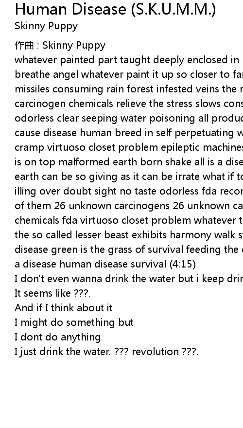 | whatever painted part taught deeply enclosed in mother earth life born addict breathe angel whatever paint it up so closer to farther apart meat seeking missiles consuming rain forest infested veins the river flow urban needle inject carcinogen chemicals relieve the stress slows consumer rotting sight no taste odorless clear seeping water poisoning all producing nothing intelligent to cause disease human breed in self perpetuating whatever close at hand finger cramp virtuoso closet problem epileptic machines shudder shock who is over who is on top malformed earth born shake all is a disease biped walk so straight earth can be so giving as it can be irrate what if to burn up and out with illing over doubt sight no taste odorless fda recommends to take daily allowance of them 26 unknown carcinogens 26 unknown cancer causing supplements infested chemicals fda virtuoso closet problem whatever to plot or build to self destruct the so called lesser beast exhibits harmony walk straight biped relate walking disease green is the grass of survival feeding the cows that they dine on all is a disease human disease survival 4: 15 | |