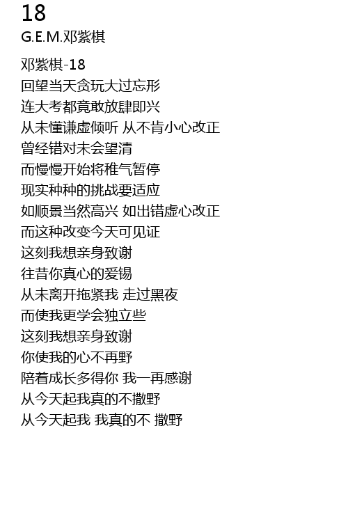 | [02:49.49] | 从今天起我 我真的不 撒野 |