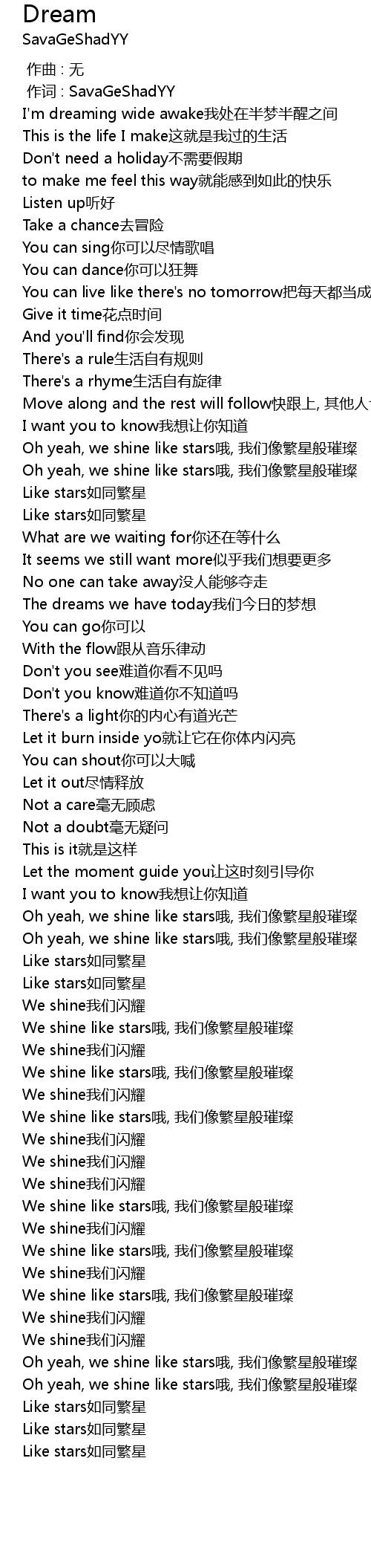 | [03:12.55] | Oh yeah, we shine like stars哦, 我们像繁星般璀璨 |