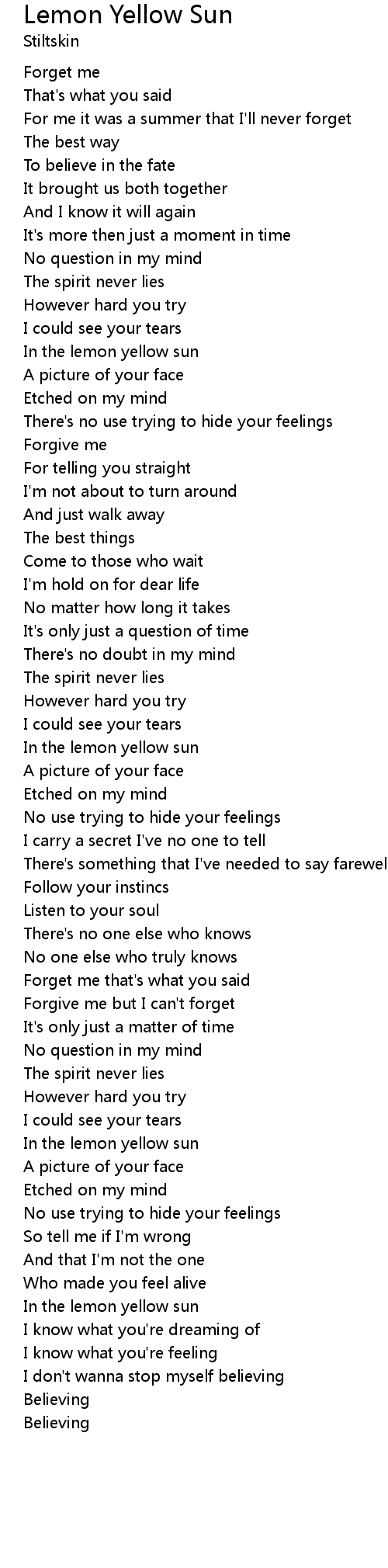 | In the lemon yellow sun | |