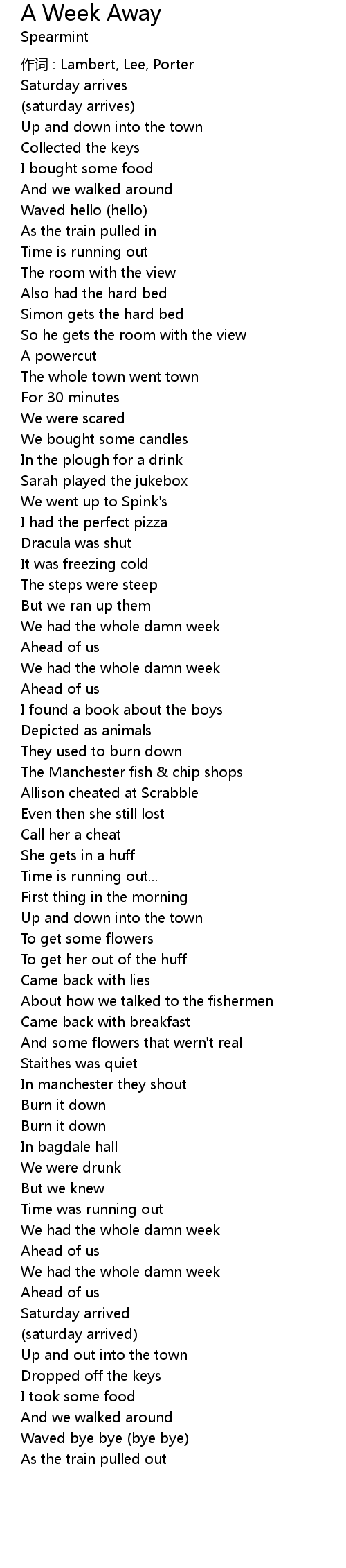 | Song | A Week Away |