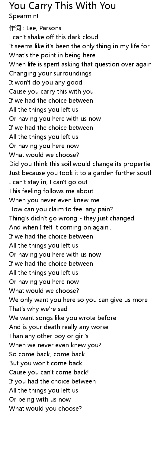 | Song | You Carry This With You |