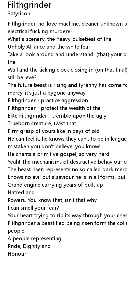 Fitlhgrinder, no-love machine, cleaner unknown to remorse and pity cynical, electrical fucking murderer |