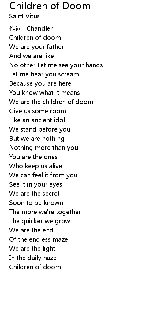 | Song | Children of Doom |