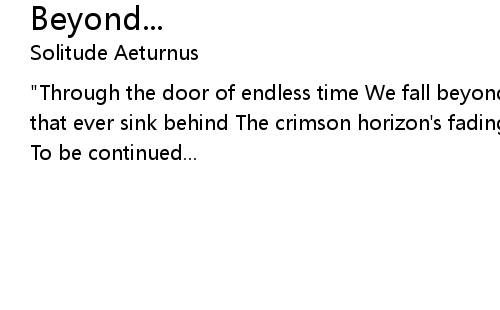 "Through the door of endless time We fall beyond the burning sky Like clouds that ever sink behind The crimson horizon's fading line."