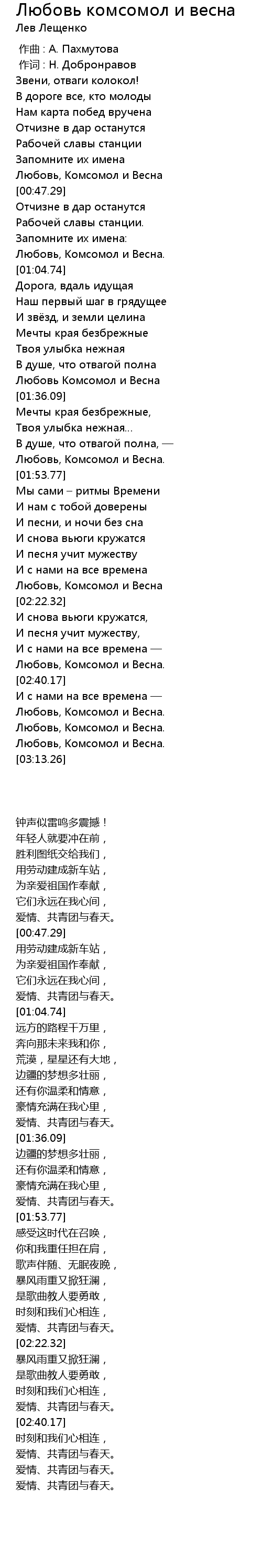Любовь, Комсомол и Весна |