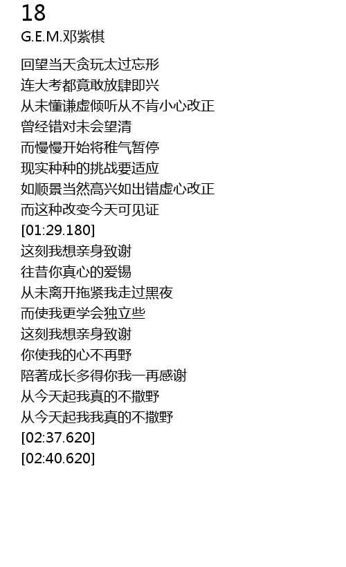 | [02:13.010] | 陪著成长多得你我一再感谢 |
