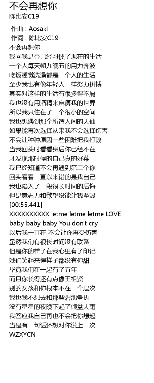 | [00:10.189] | bú huì zài xiǎng nǐ |